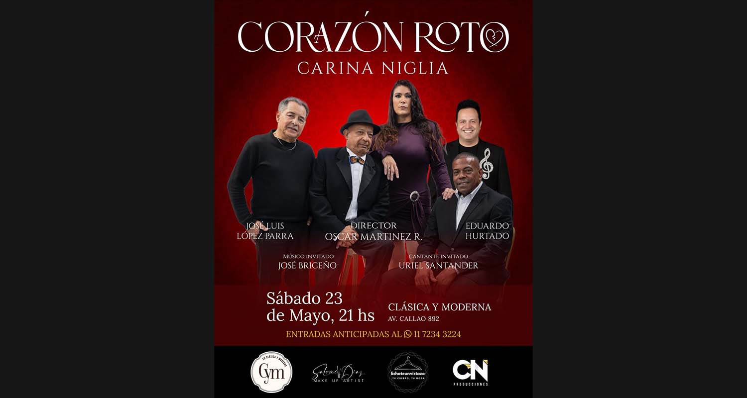 De la mano de Carina Niglia para CN Productora, llega a los escenarios porteños “Corazón Roto”. Este espectáculo no es solo un concierto, sino un viaje por las fibras más sensibles de nuestra música, donde la interpretación se une a una puesta en escena impecable.