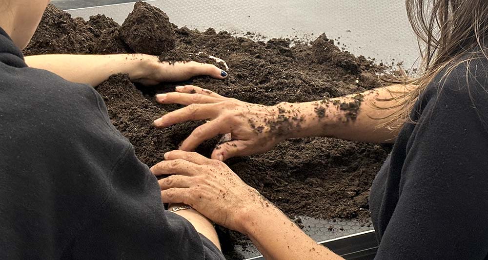“Lxs espectadores se encontrarán con diferentes situaciones que involucran tierra y algunos otros objetos en una invitación a interactuar con estos materiales y con lxs demás. Rodeos se activa a partir de las manos. A veces aparecen formas entre varias manos. Otras veces los encuentros son breves, entre pocas. Se puede tocar o no tocar. Sostener, soltar, cambiar. Las manos prueban modos de estar con otras manos”, agregan Lozza & Hang.