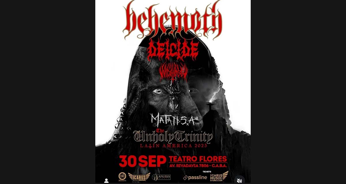 Behemoth, Deicide y Nidhogg se presentarán en vivo el próximo martes 30 de septiembre de 2025 en El Teatro Flores (Av. Rivadavia 7806, C.A.B.A.), como parte de la devastadora gira “The Unholy Trinity Latin America 2025”.